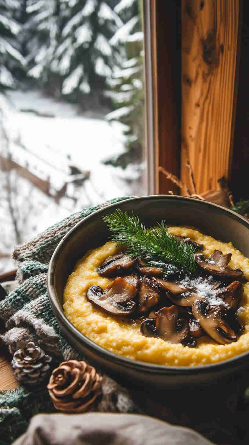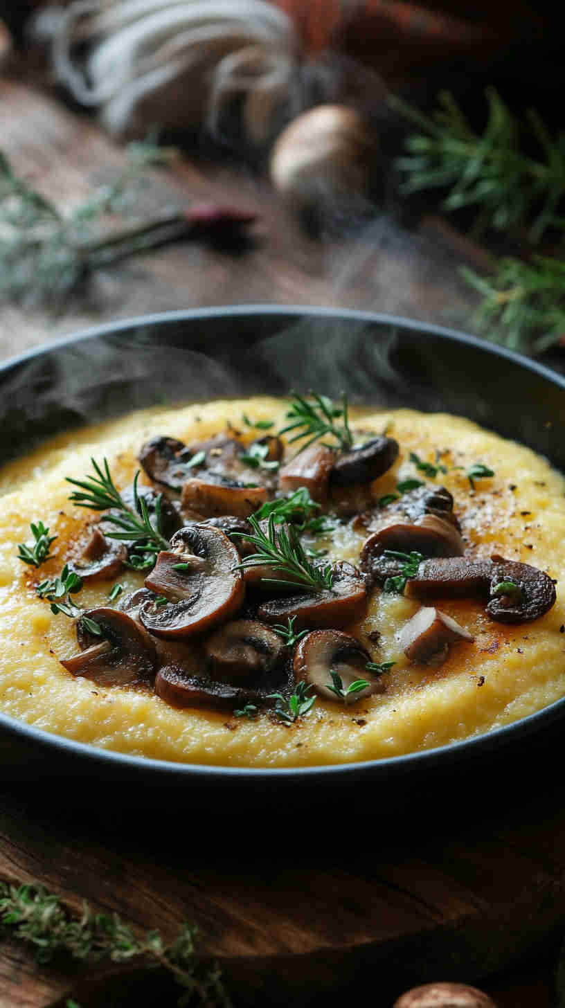 Polenta (coarse cornmeal) is the base—opt for traditional (not instant) for authentic creamy texture, though instant works in a pinch. Mixed mushrooms like cremini, shiitake, porcini (dried and rehydrated for intensity), and oyster add varied earthy flavors and textures; fresh wild ones elevate it for holidays.