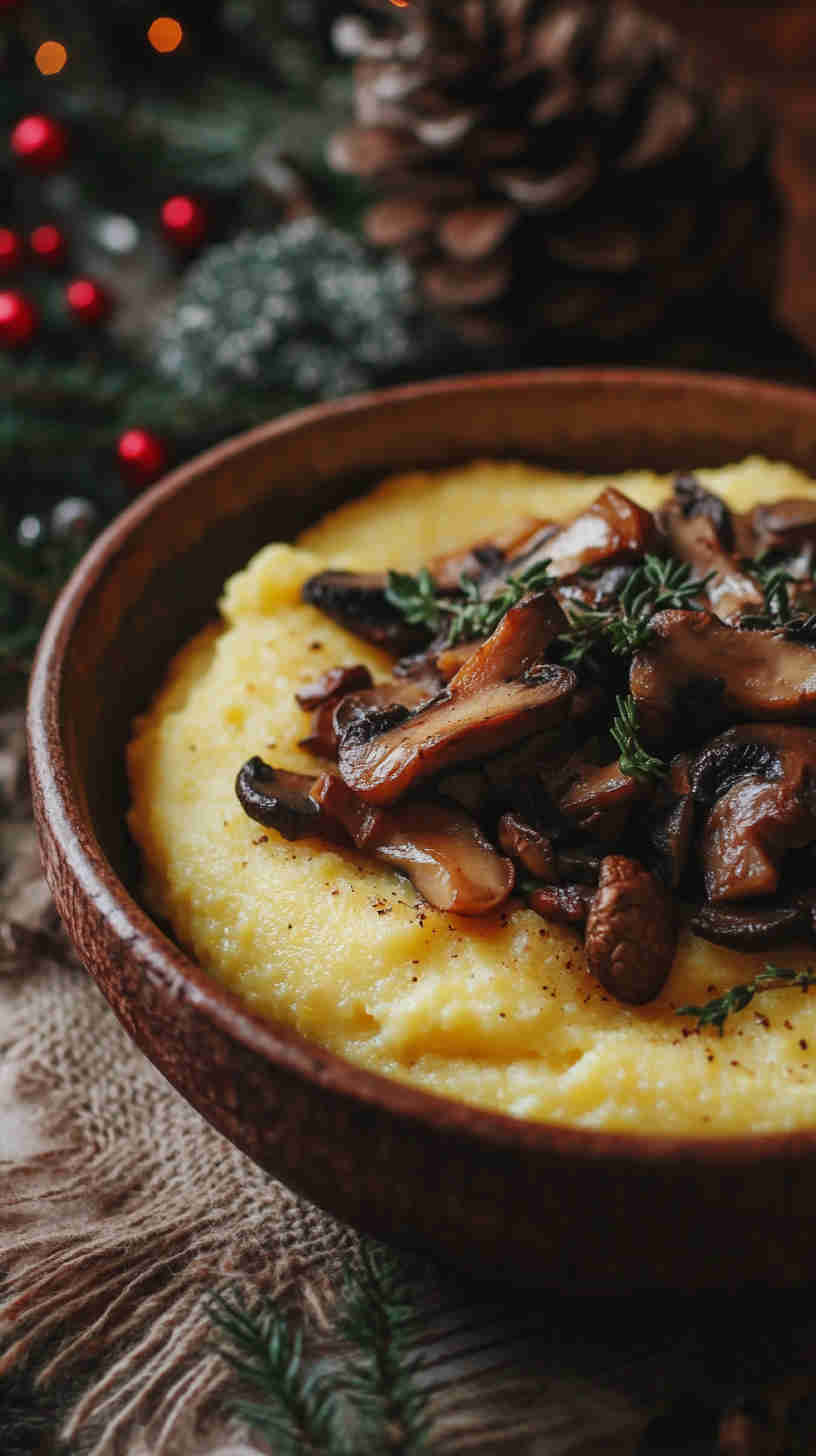 Sauté mushrooms in batches if your pan is small to ensure they brown rather than steam. Add a splash of truffle oil at the end for a gourmet holiday touch. If using instant polenta, cut cooking time significantly but taste for seasoning. Prep mushrooms ahead to save time on Christmas day.