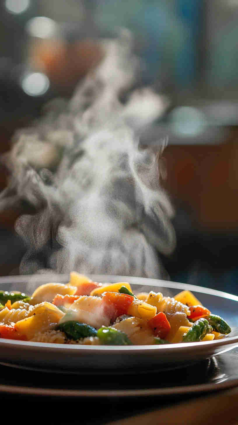 - Cook pasta al dente and immediately toss with veggies and sauce to absorb flavors.