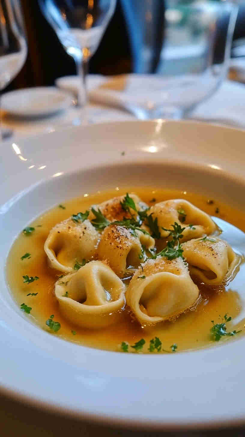 This authentic Tortellini in Brodo captures the heart of Emilia-Romagna cuisine, delivering pure comfort with its harmonious flavors. The tiny, hand-folded tortellini burst with a luxurious meat-and-cheese filling that’s rich yet balanced, while the crystal-clear broth provides a soothing, savory base without overpowering the pasta.