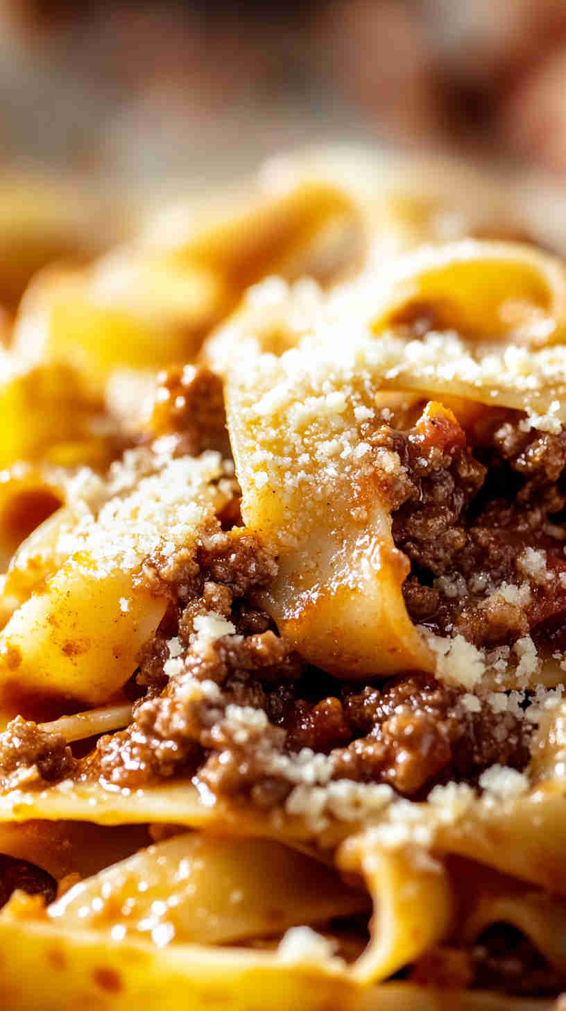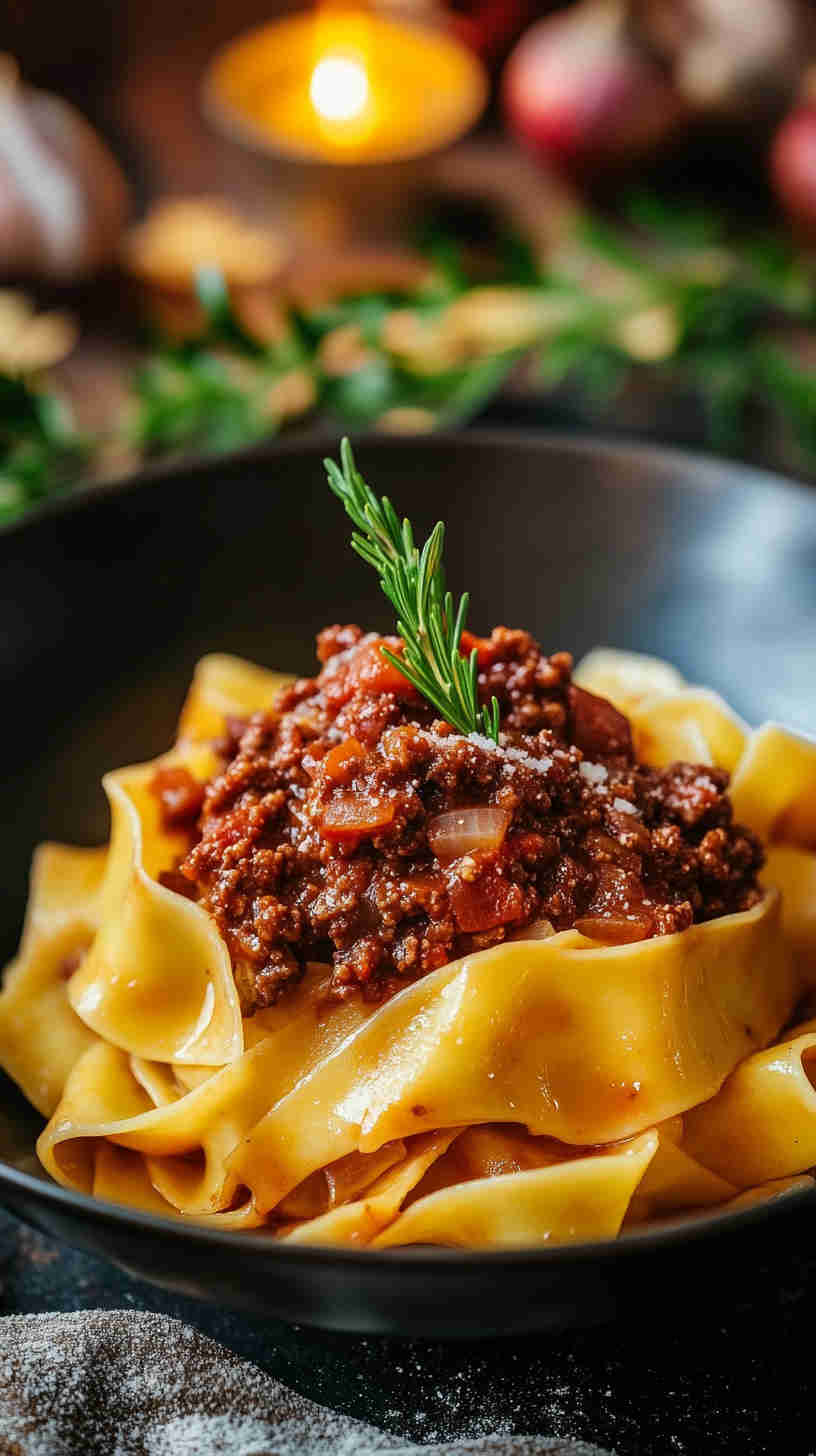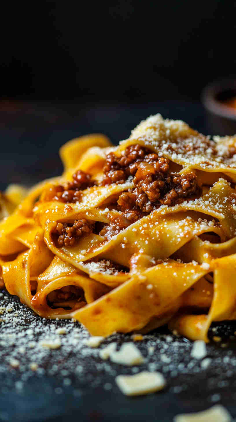 This recipe captures the true essence of Italian ragù alla bolognese, slow-cooked to develop deep, layered flavors that make every bite incredibly satisfying. The wide pappardelle noodles provide the ideal texture to hold the thick, meaty sauce, while the addition of milk tenderizes the meat and creates a silky finish.
