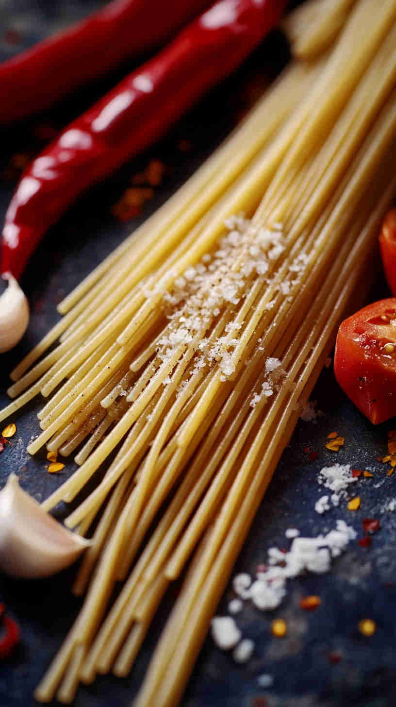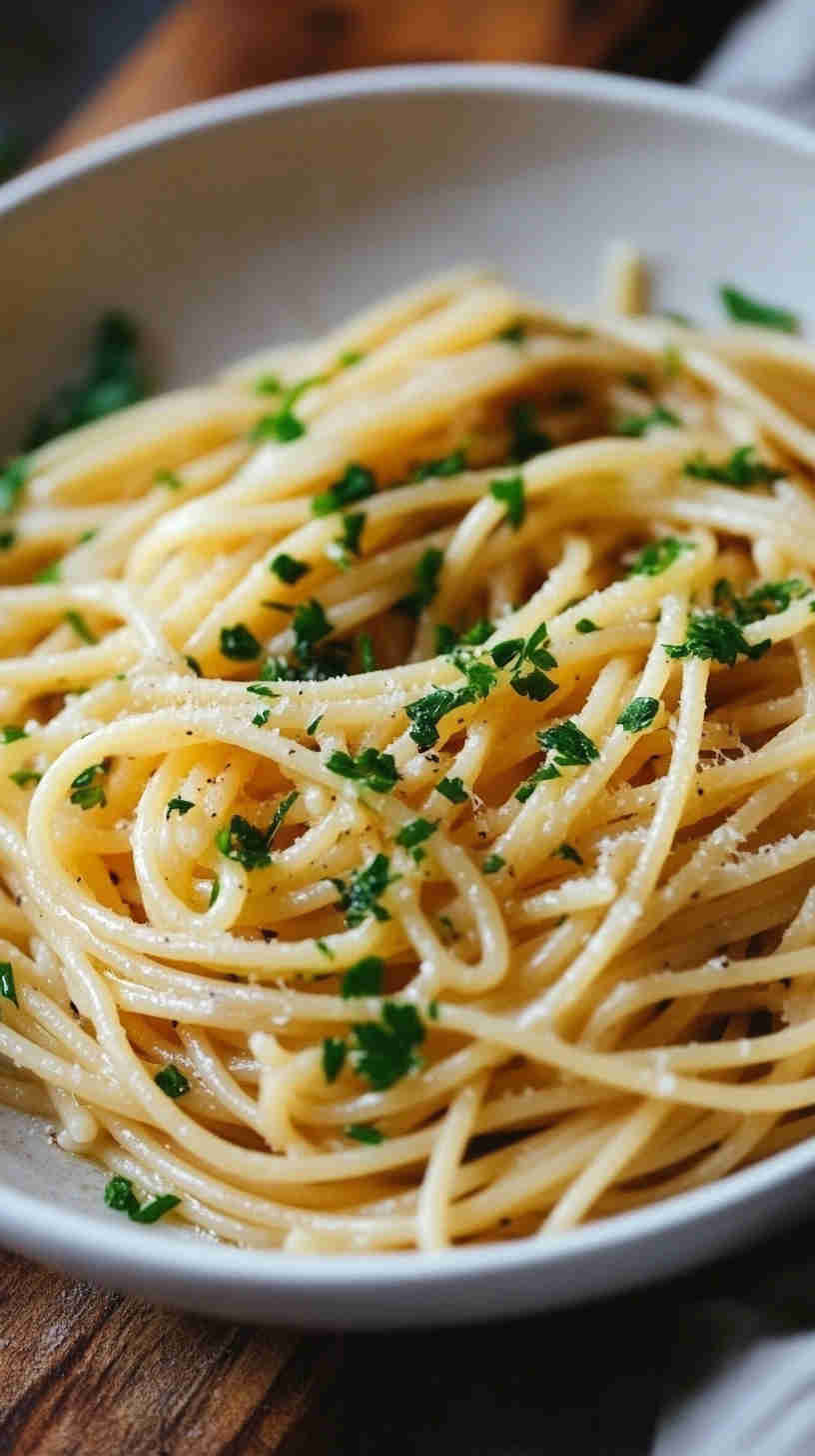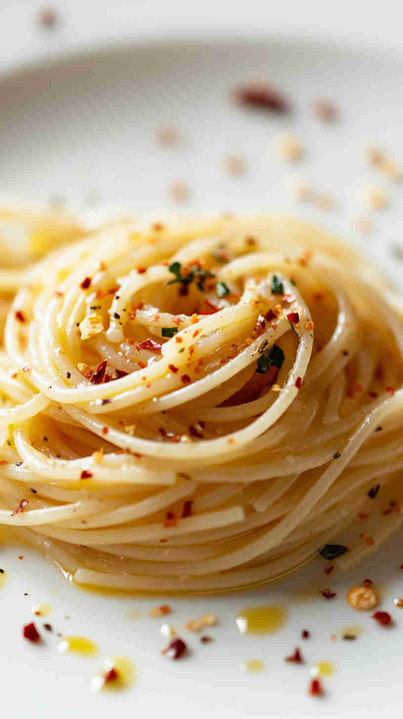 Extra virgin olive oil forms the rich, flavorful base—opt for a fruity, high-quality one to elevate the dish. Garlic should be fresh and plump; thinly slice (not mince) for delicate texture and even infusion. Red chili flakes (or peperoncino) provide adjustable heat; start low and increase to taste. Fresh flat-leaf parsley adds herbal freshness and color—chop just before using. Spaghetti is traditional, but any long pasta works. Salt the pasta water generously (like seawater) for perfectly seasoned noodles. Optional grated Parmesan or Pecorino Romano adds umami, though purists skip it.