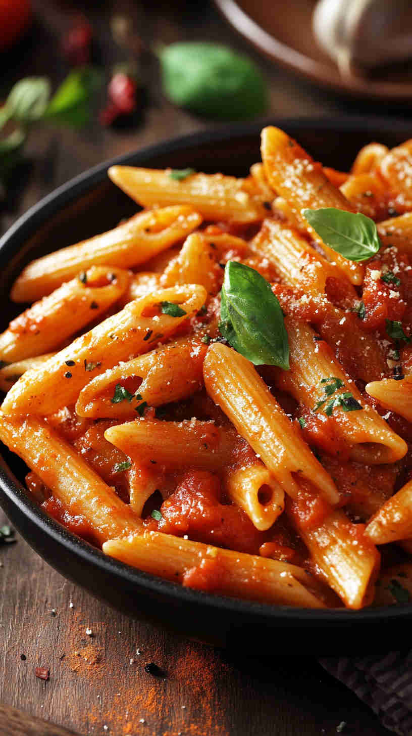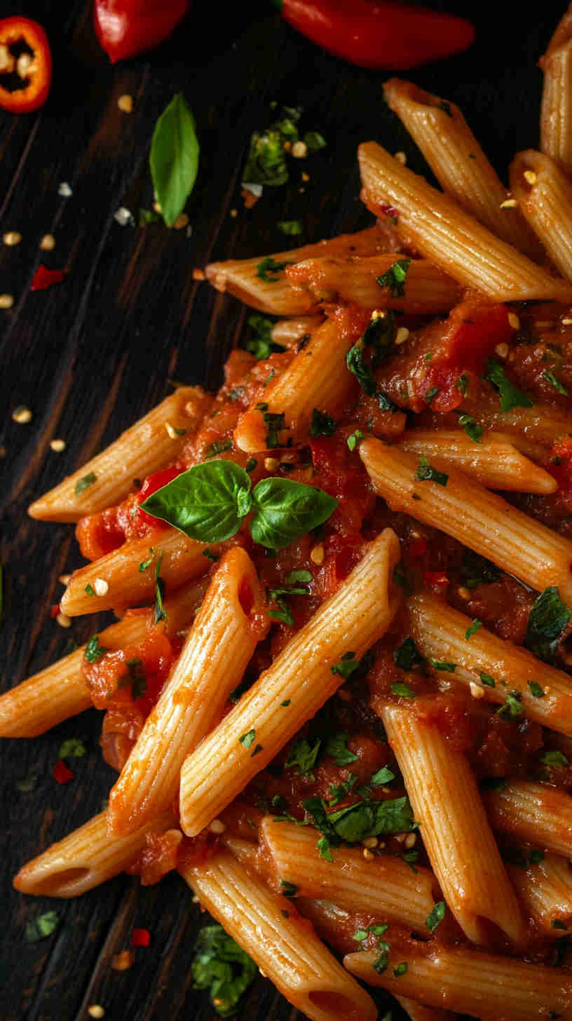 Extra virgin olive oil should be fruity and robust, as it infuses the dish with richness. Red pepper flakes (or dried chilies) provide the signature “angry” heat—use Calabrian or Italian varieties for authenticity. Penne pasta is traditional for holding the sauce in its ridges, while fresh parsley and basil add herbal brightness. Salt and a touch of black pepper enhance everything.